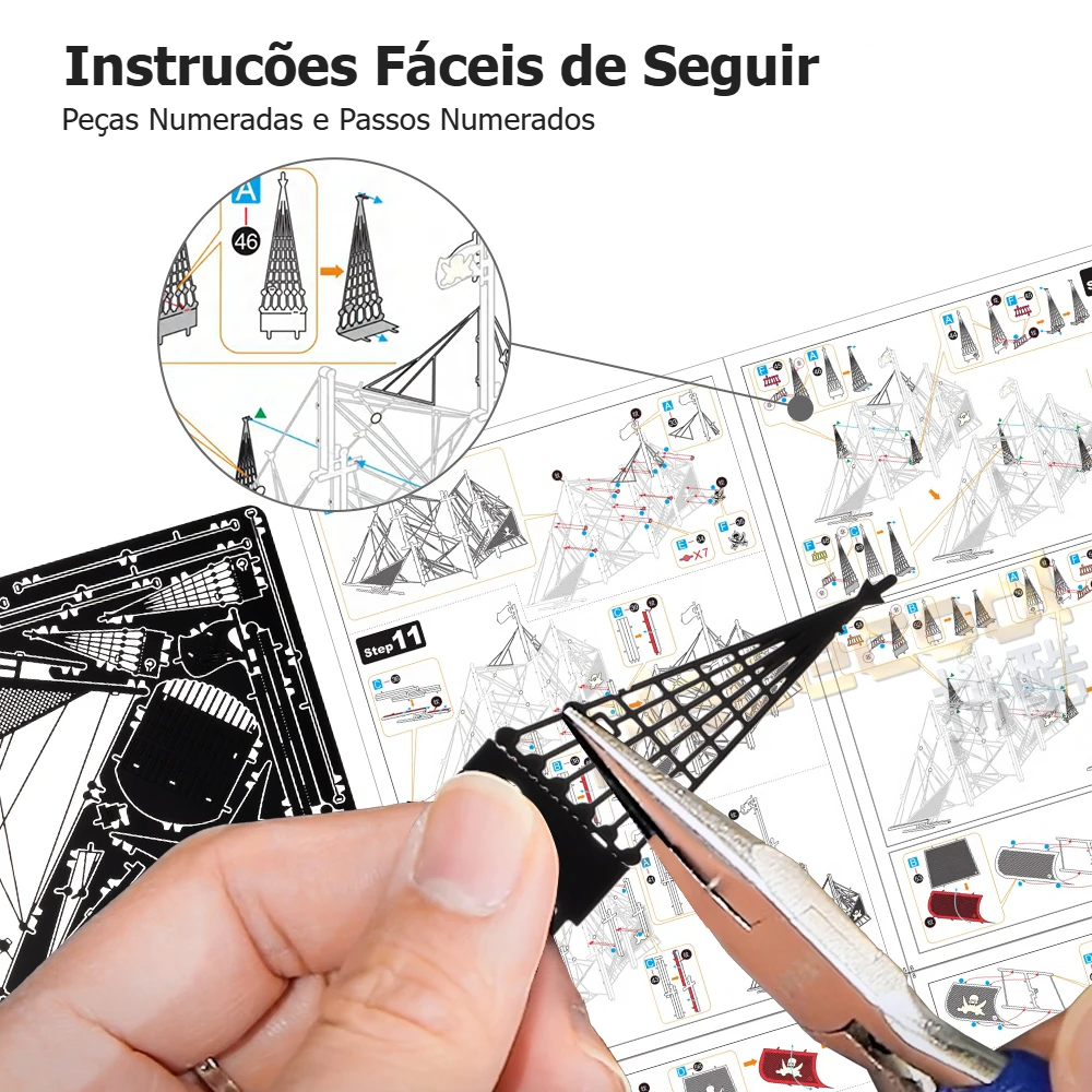 🛠️ Modelo Metálico Detalhado – peças cortadas com precisão, que formam um modelo realista